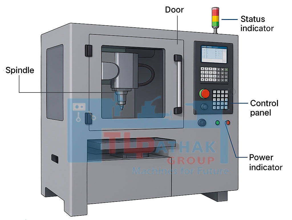 | Enclosed Structure Provides operator safety, reduces noise, and contains chips/coolant. |